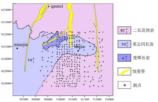 胶东地区是中国金矿主产地,其探明储量约占全国的三分之一多。胶东金矿主要类型是破碎蚀变岩型金矿,矿体产出于胶东群变辉长岩与二长花岗岩接触的断裂带中,严格受控与北东向断裂带。焦家断裂带是控矿的主断裂,由于焦家断裂带往南逐渐隐伏到第四系覆盖之下,导致焦家断裂带往南延伸的位置难于确定,也未能确定南延带是否具备成矿条件,大大制约了胶东金矿的找矿进展。为此,我们在焦家断裂带南段布置了三维音频大地电磁测深工作(图1),通过数据处理和三维反演,获得了焦家南段三维电性模型(图2)。