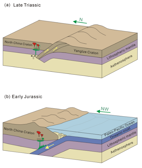 华北克拉通北东部在中生代早期受到多种构造体系的影响,并且其类型和时空范围等问题仍未得到解决(图1)。由于中生代时期这一地区既涉及古亚洲洋的闭合,也涉及环太平洋构造体制的影响,甚至叠加了华北与扬子克拉通之间俯冲和碰撞的历史,以及蒙古-鄂霍茨克构造域的影响,因此对于华北克拉通北东部中生代早期的构造演化历史存在颇多争议。这些争议的产生是由于缺乏系统的地质年代学数据和早中生代火成岩的时空变异研究。本研究获得了华北克拉通北东部系统的锆石年龄和原位Hf-O同位素数据,限制了该地区的早中生代构造演化和各种构造体制影响的时空范围。