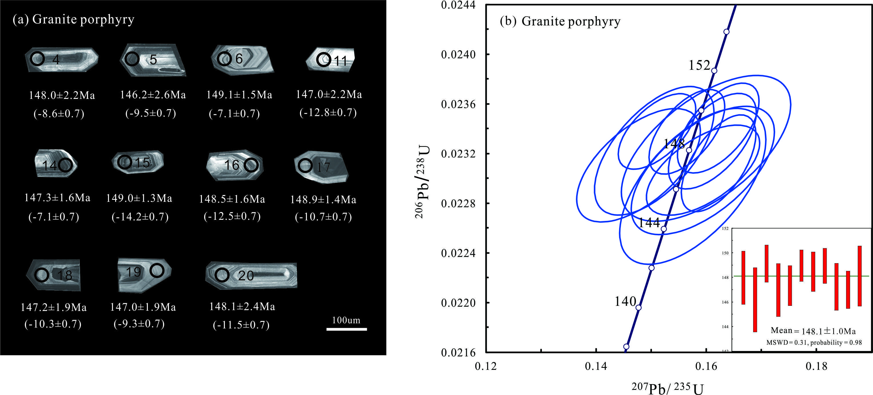 图1 夜长坪钼钨矿床成矿岩体锆石U-Pb年代