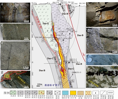通过对阿舍勒出露的地层进行重新研究,辅以锆石U-Pb定年的方法,重新建立了阿舍勒矿区地层格架。确定阿舍勒组可分为5个序列,从下至上依次为:硅质凝灰岩层(Das-A)、英安质层(Das-B)、流纹质层(Das-C)、矿层(Das-D)、及玄武岩层(Das-E)在矿区呈整合接触(...   查看详细>>>>