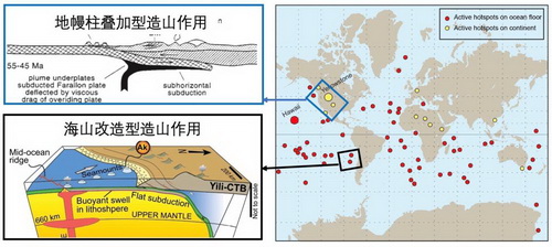 1 全球现代热点分布图与地幔柱与造山带相互作用的两种形式