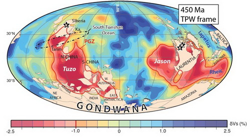 3 450 Ma全球板块重构显示南天山洋位于非洲地幔柱区域上方