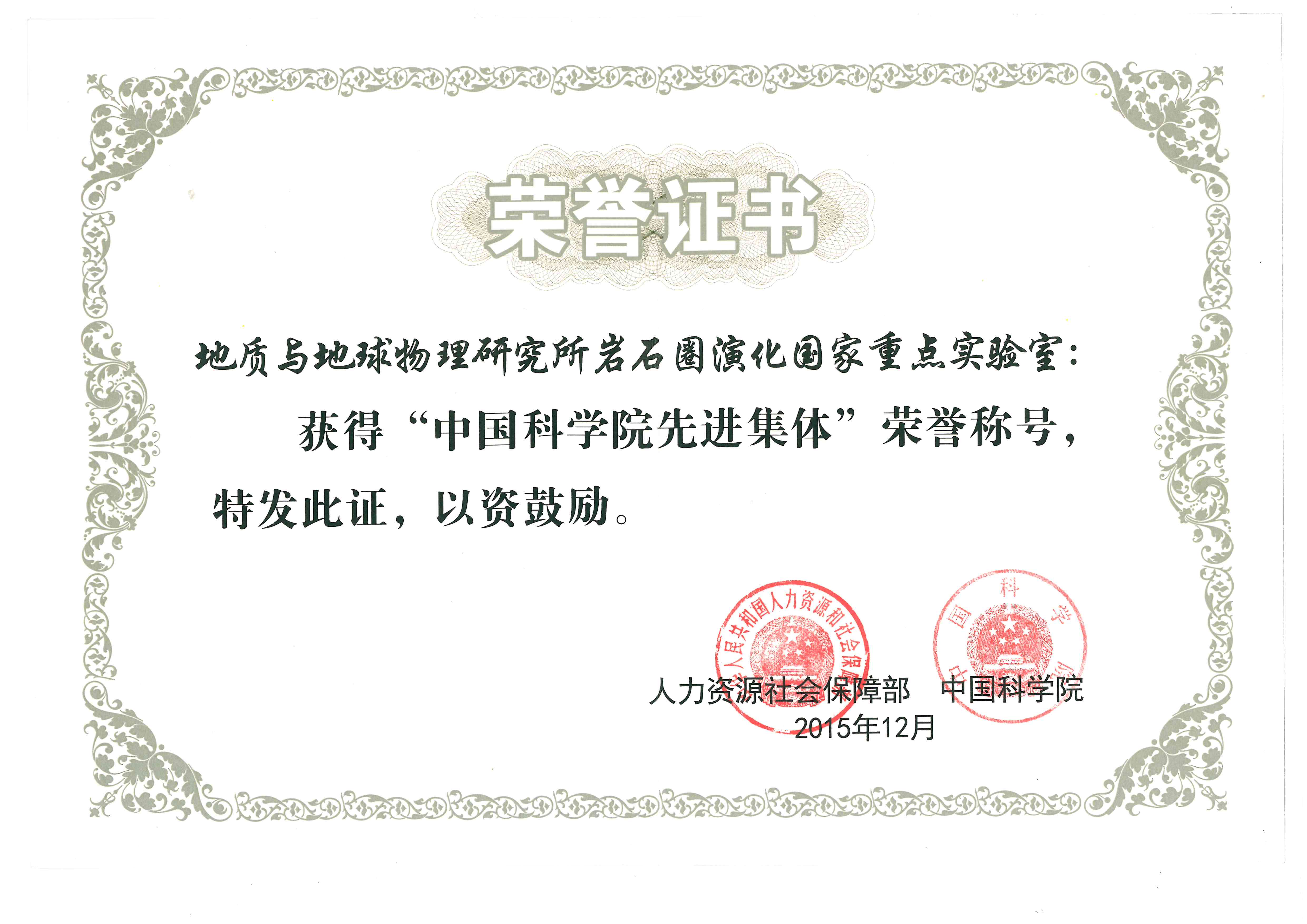 岩石圈演化国家重点实验室荣获“中国科学院先进集体”荣誉称号