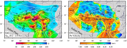 青藏高原是由印度板块与欧亚板块碰撞和挤压造成的。在形成过程中,高原受到整体抬升,内部物质在挤压和重力的双重作用下从内部向四周流动。基于这一设想提出的下地壳流模型能够较好地解释青藏高原的演化和地表形变特征,并得到一些地质学和地球物理学观测资料的支持。然而,由于很难对下地壳中的动力学过程进行直接观测,对其中物质流动的分布仍未得到比较一致的认识。高原的形成也伴随着强烈的热运动。热过程以及由此产生的温度变化会改变材料的本构关系,影响到地质块体的流变学特性。这一变化不仅支配着下地壳流动的模式,同时也会影响地震波速度和衰减的变化。因此,通过研究地壳和上地幔中地震波的衰减和速度变化有可能为地壳流的分布形态提供一定的约束。