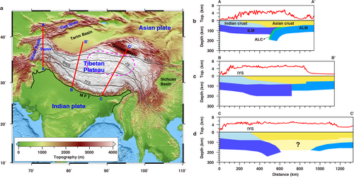 图1 青藏高原及其邻区的地形与岩石圈结构
