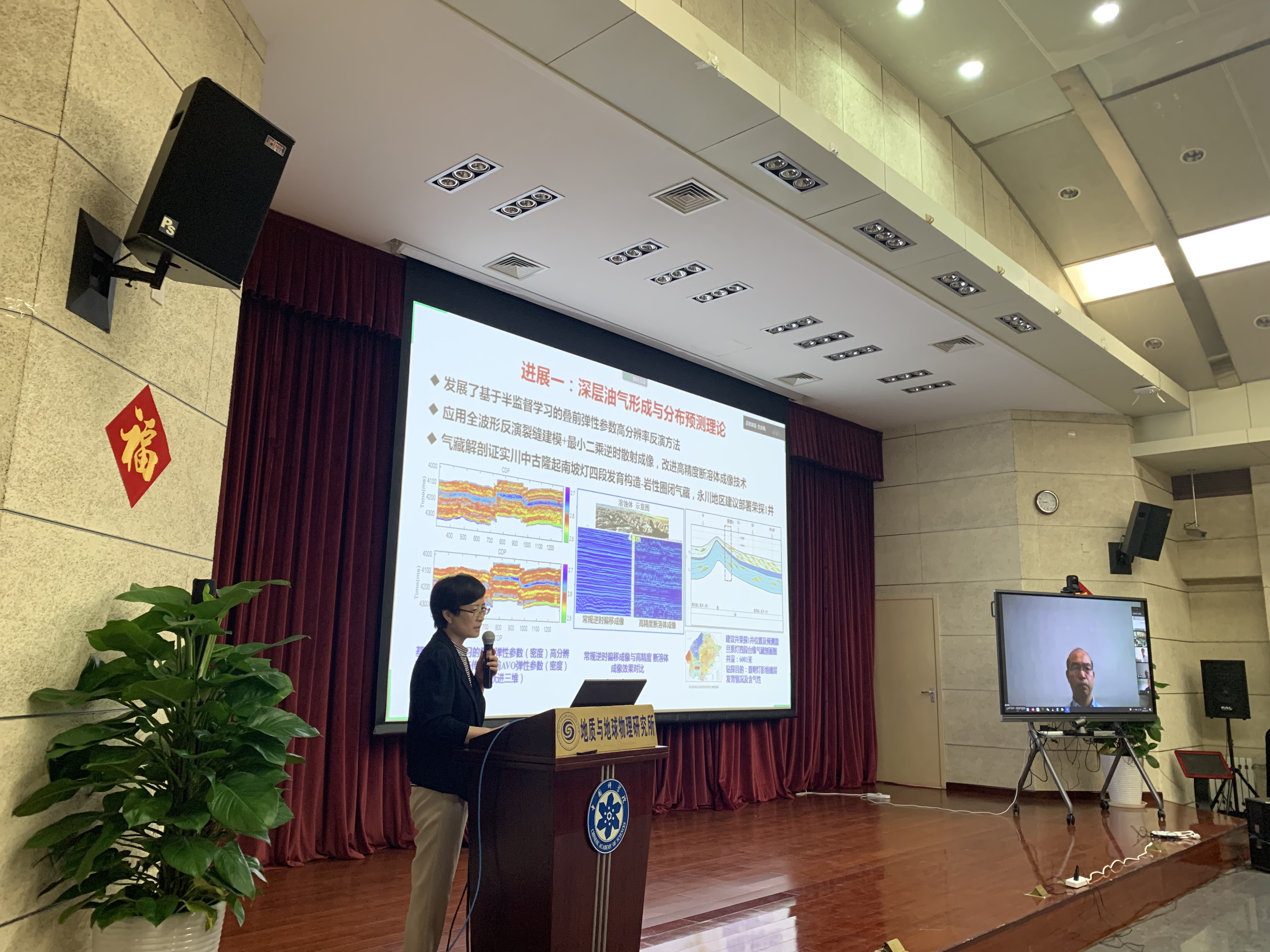 杨进辉副所长首先代表研究所对与会领导及专家表示欢迎,感谢各位领导专家对专项执行三年来的支持和帮助。专项前期取得了一些成果,当前进入了关键时期,希望各位专家给予更多的建议和指导。接下来,底青云研究员代表专项做了2020年度年中工作进展汇报,介绍了深层油气形成与分布预测、地质导向和旋转导向仪器研发、高温高压传感器研制、系统集成测试等方面的进展和成果,专项中期检查函评报告编写、财务和档案自查的情况。上半年受新冠疫情影响,参研人员需要出差开展仪器组装联调和实钻井测试未能按期进行,针对上述问题提出了下半年加快推进集成测试和井场试验的工作安排。