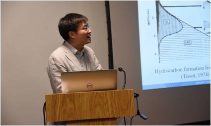 2018年4月10至11日,项目一课题四组织专业技术团队到美国休斯顿大学石油有机地球化学中心联合开展了技术交流,子课题共有2人汇报交流相关成果,休斯顿大学共有4位专家做了报告。通过学术交流,进一步深入探讨了双方合作以来在油气有机-无机复合成烃方面的进展(图1)。