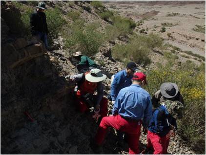 项目一课题四主要研究人员赴塔里木盆地阿克苏地区开展了2次野外地质工作,主要踏勘震旦系白云岩、下寒武统玉尔吐斯组页岩,并系统采集剖面岩石样品265件。