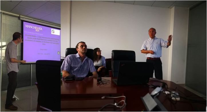 2018年6月26-27日,英国曼彻斯特大学Greg Holland及兰卡思特大学Zheng Zhou博士,美国加洲能源与环境研究中心(PEERS)朱地、张焕旭、胡健博士,美国科学院院士Donald E Canfield等人应广州地化所邀请进行学术交流,在稀有气体在深层油气运移示踪中的作用、井场在线碳同位素分析测试新技术与应用、中国蓟县系-待建系、神农架群、南华-震旦系等典型元古界烃源岩发育期古气候、古海洋环境等领域进行了深入交流讨论。