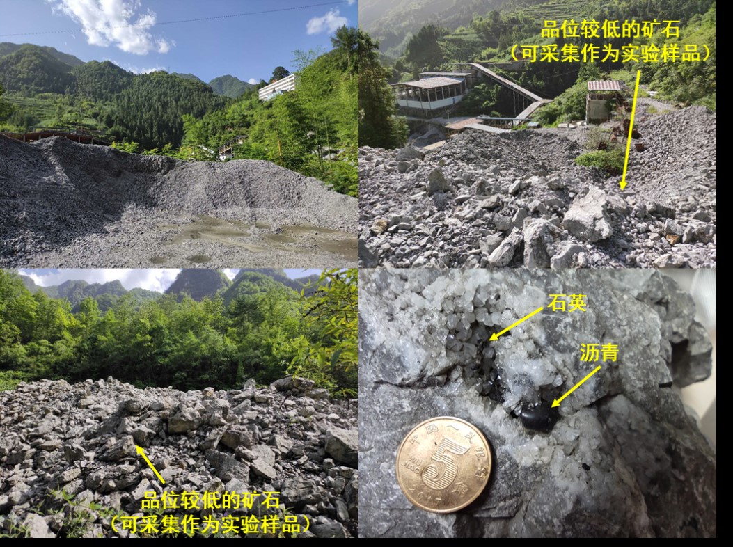 项目一01课题04子课题多名骨干成员四川盆地北缘踏勘铅锌矿中沥青和热液白云岩的分布特征,采集了沥青、热液矿物和白云岩样品140余件,以进一步开展古油藏的形成机理与演化特征的地球化学与流体包裹体记录研究。